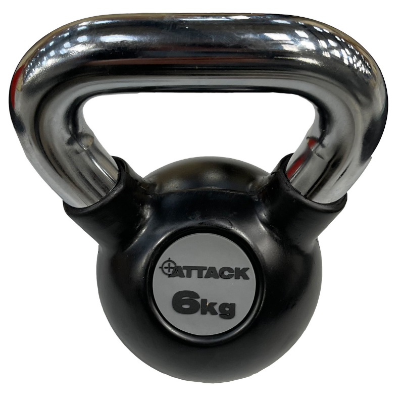Attack Fitness Chrome Handle Rubber Kettlebell 6kg - Black